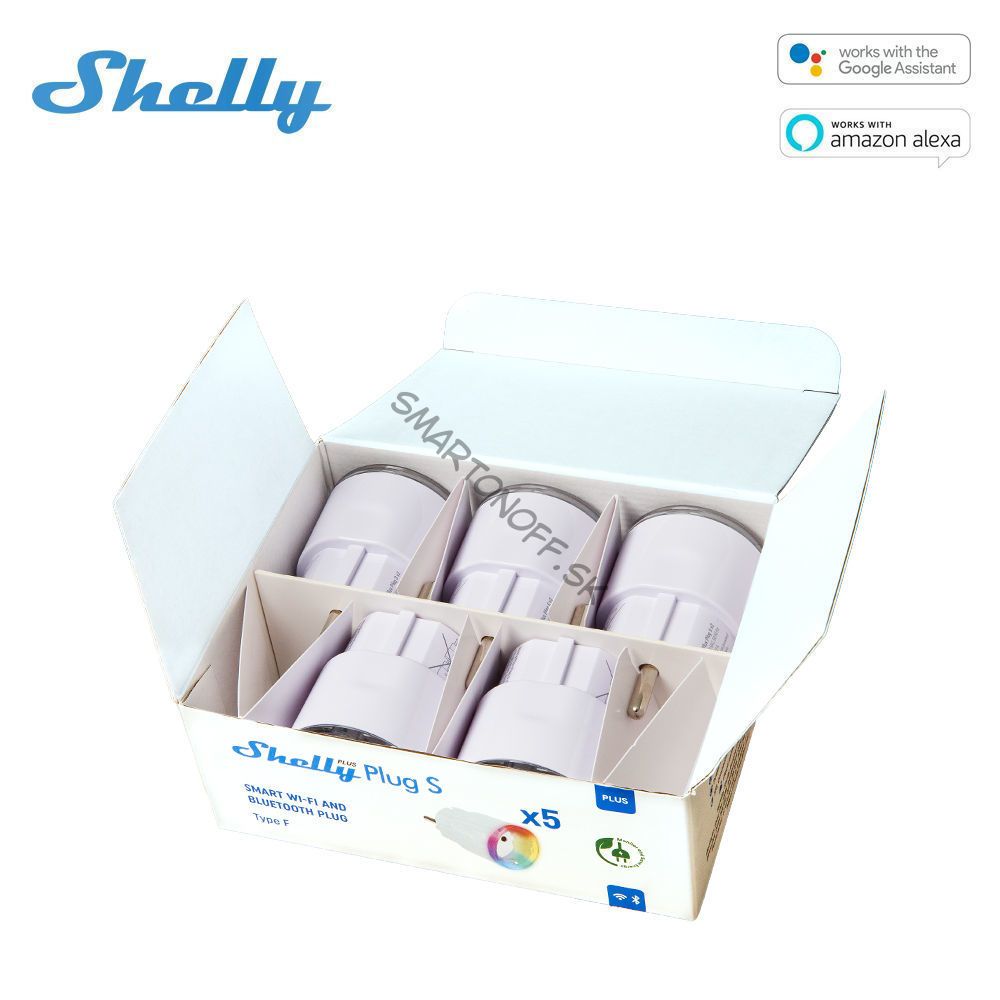 viacShelly Plus Plug S, zásuvka s meraním spotreby, WiFi 5ks balenie BIELA